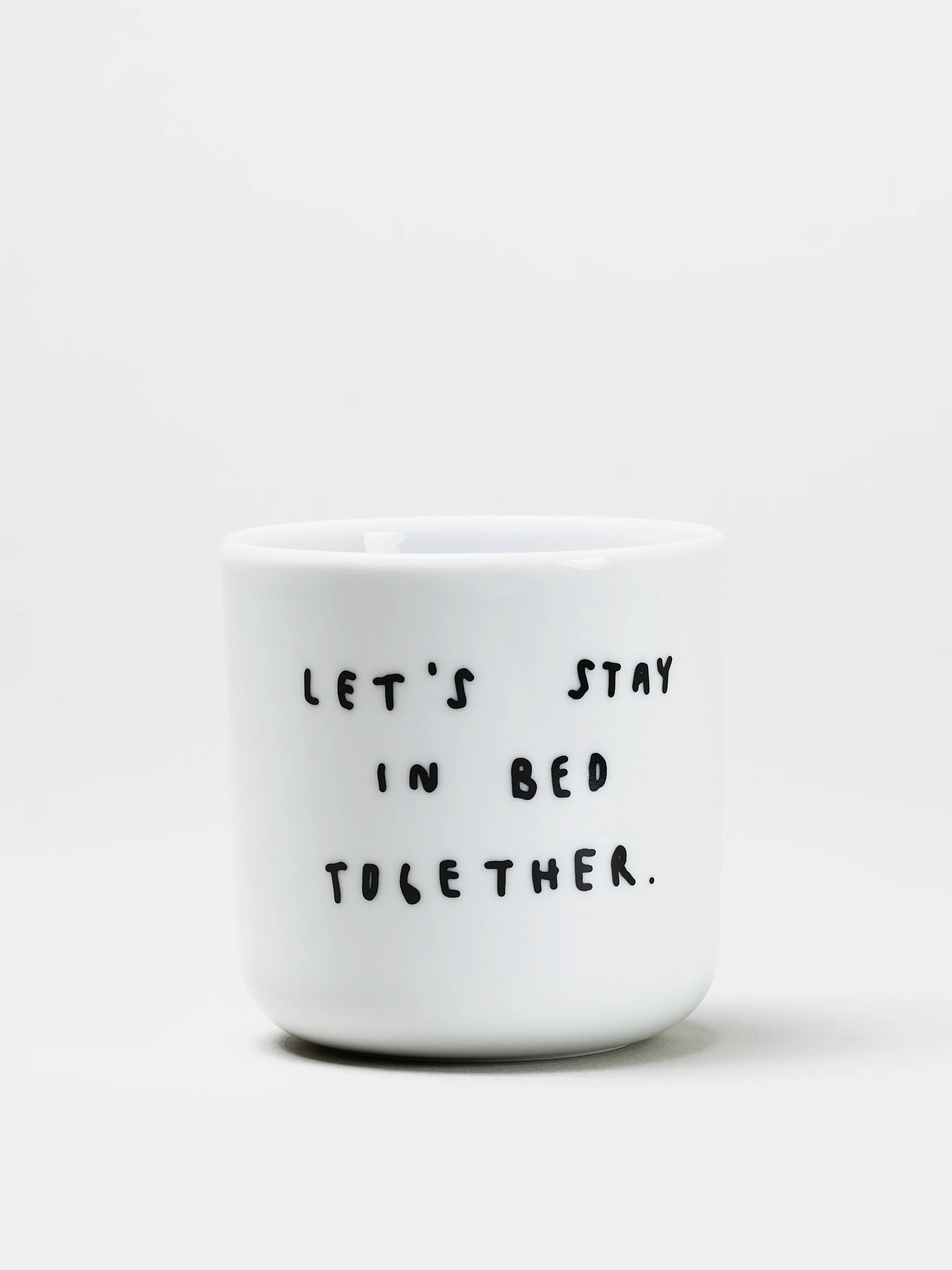"Let's stay in bed together" ein spülmaschinengeeignetes Statement.