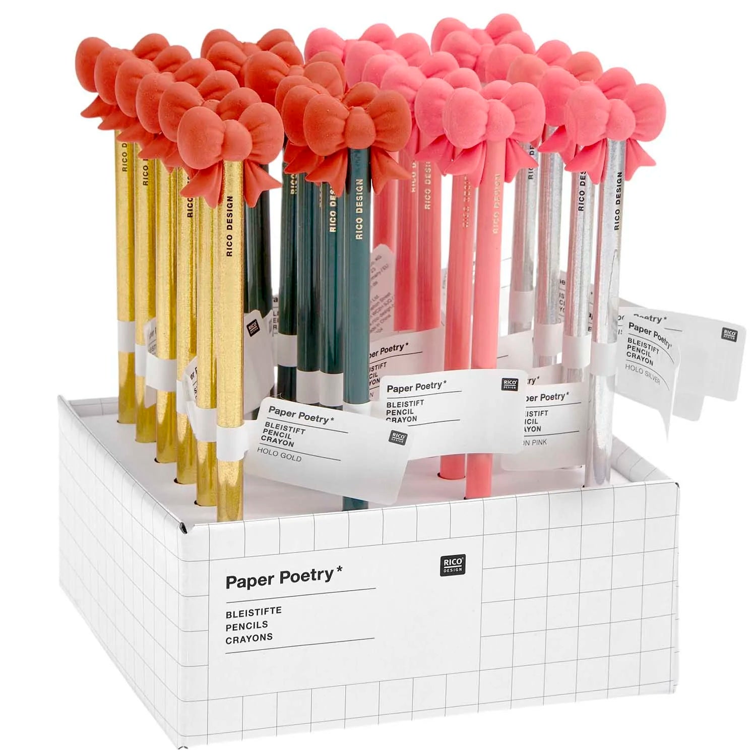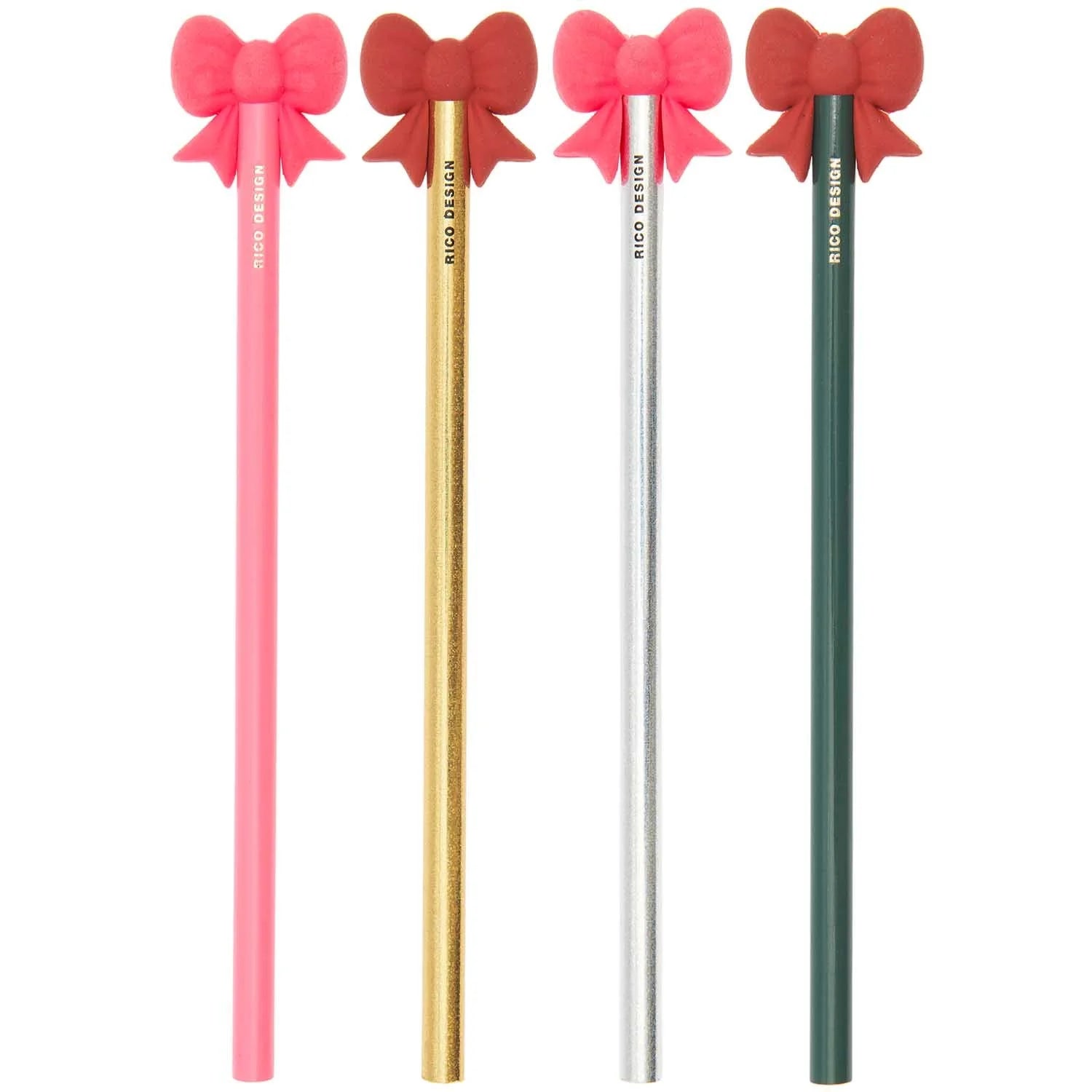 Hübsche Bleistifte mit Schleifen-Radiergummi in vier unterschiedlichen Farben