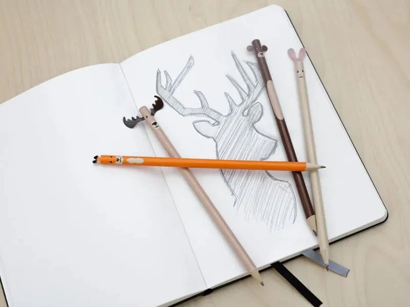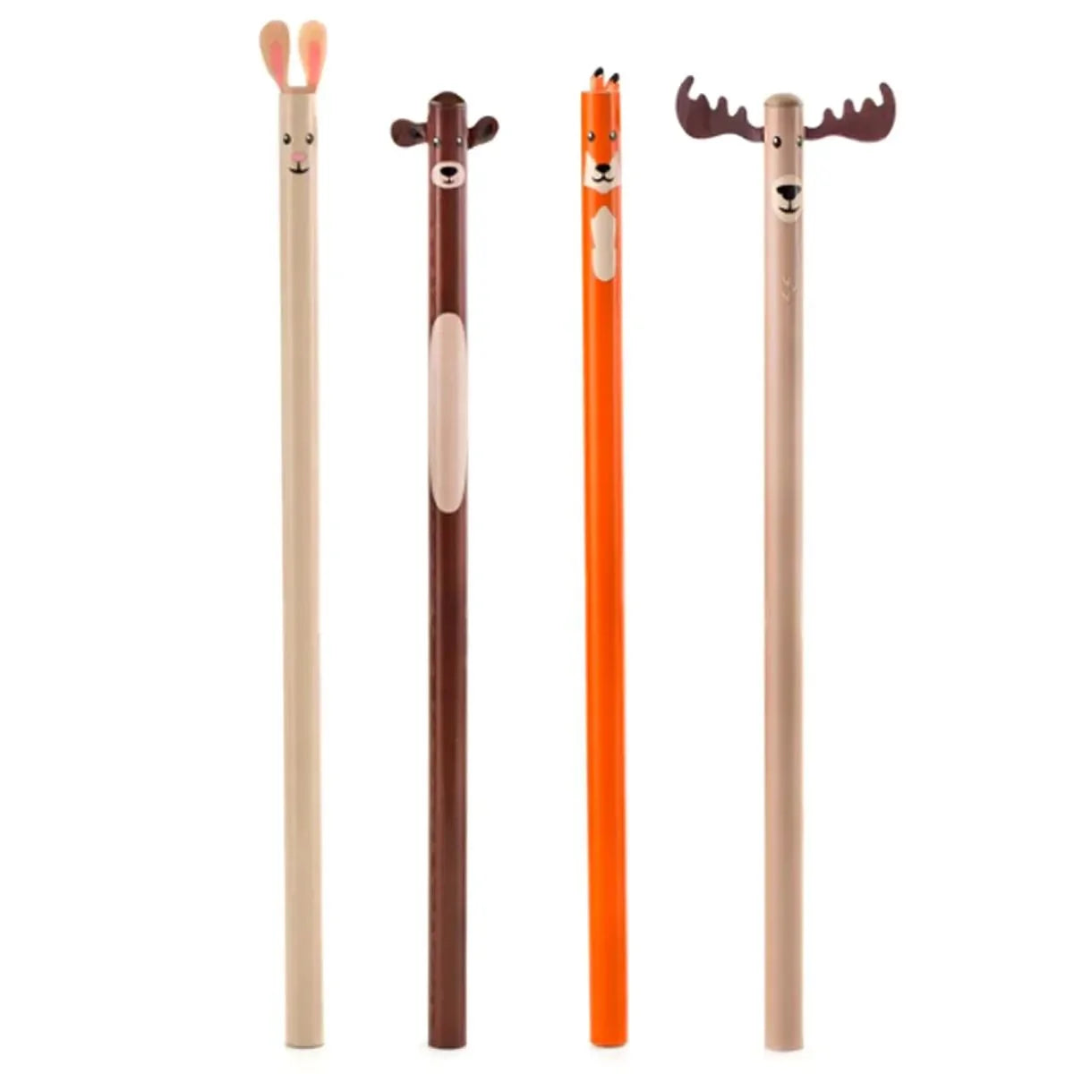 Auf den Stiften sitzen vier lustige Tierfreunde, die das Schreiben und Malen bestimmt versüßen werden.