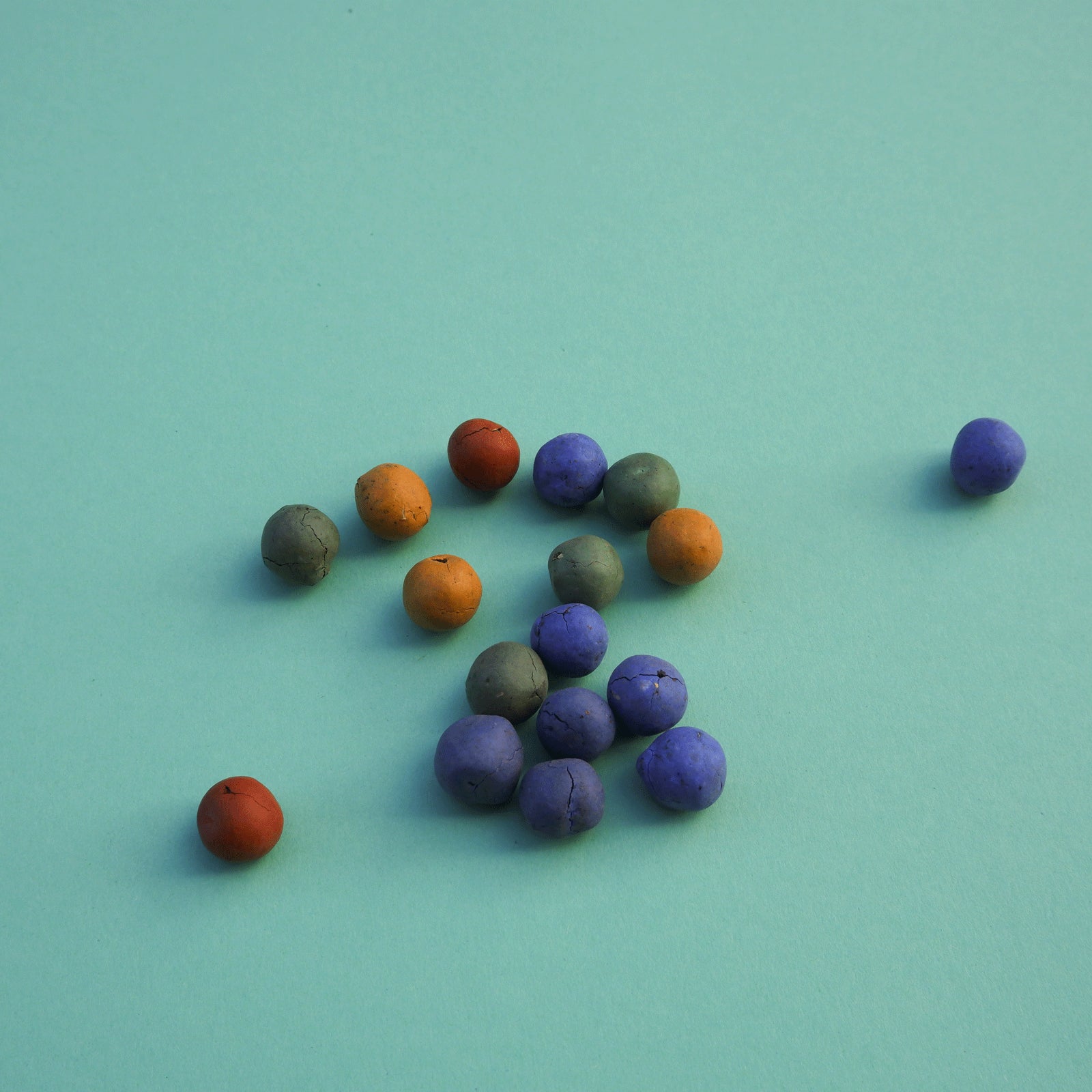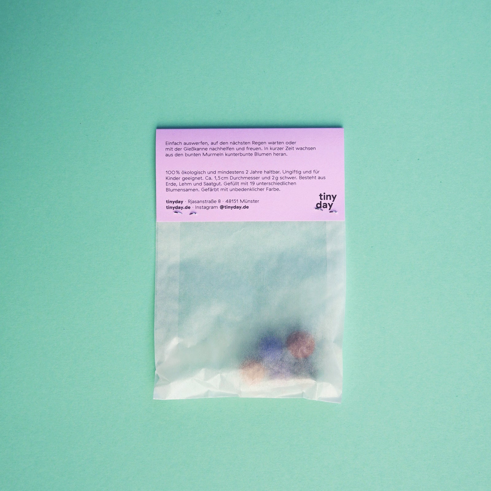 Kinder geeignet. Ca. 1,5 cm Durchmesser und 2 g schwer. Besteht aus Erde, Lehm und Saatgut. Gefüllt mit 19 unterschiedlichen