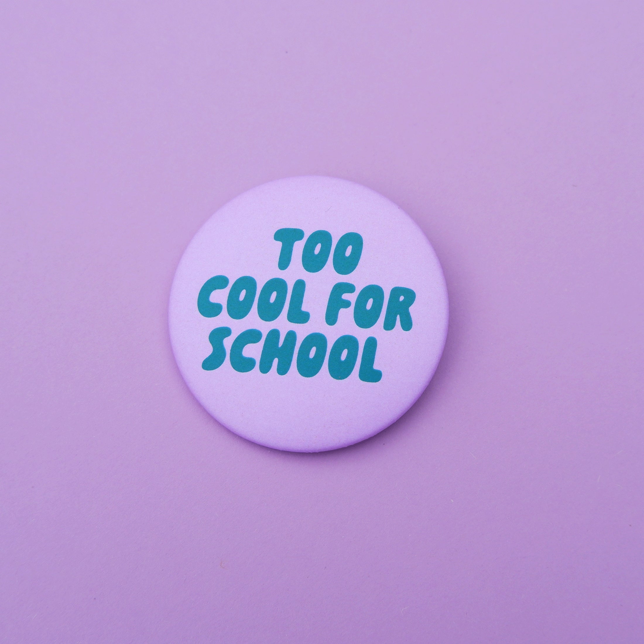 Button "Too cool for school" flieder-rgün