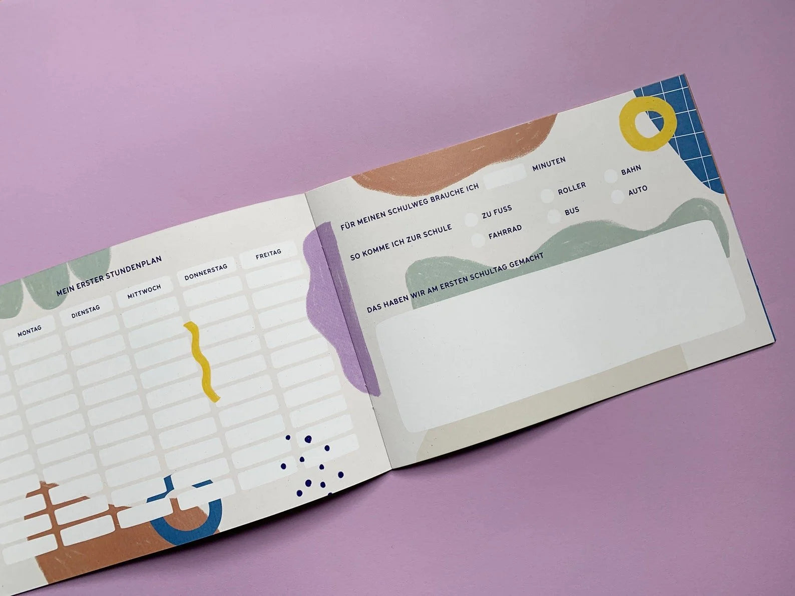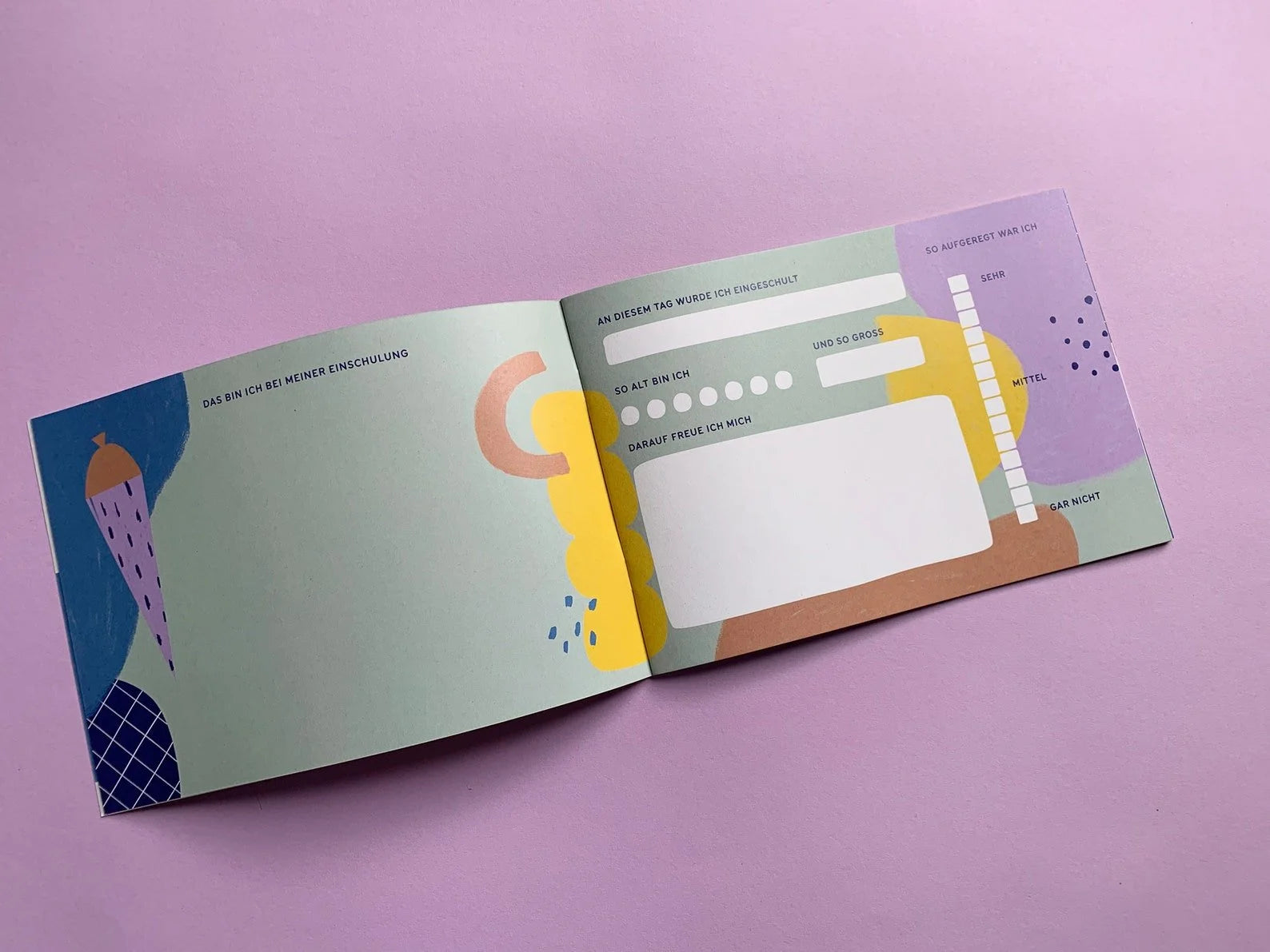 Es können Fotos, Texte, der erste Stundenplan, Inhalt der Schultüte, Wünsche und mehr verewigt werden.
