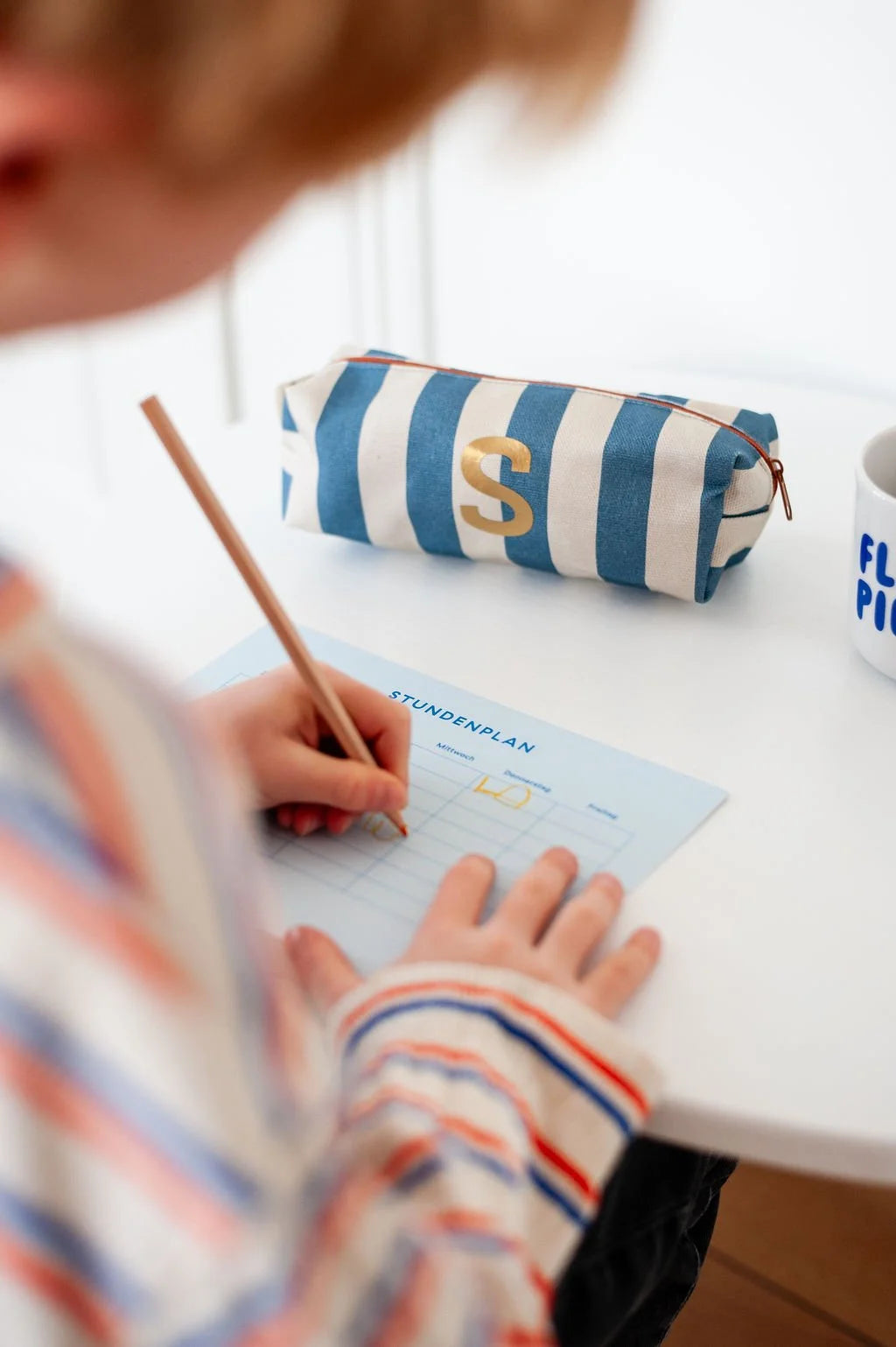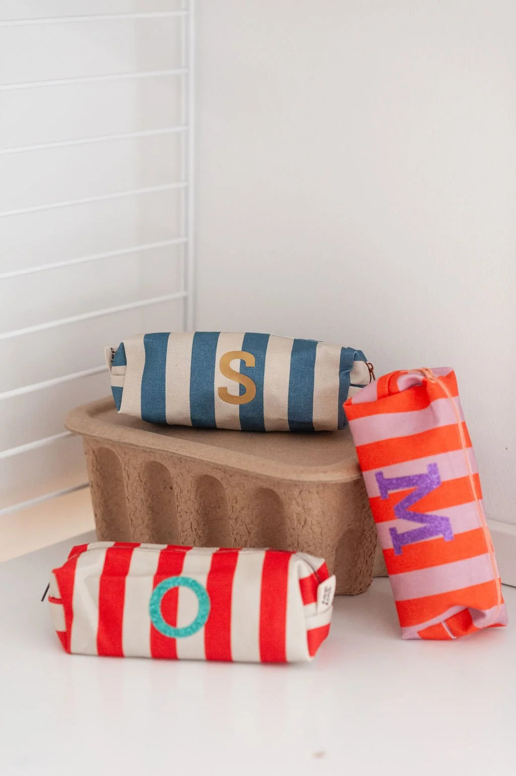Dieses wunderschöne Etui im angesagten Streifendesign wird zu deinem ganz persönlichen Lieblingsstück: Mit einer individuell wählbaren Initiale in deiner Wunschfarbe wird jedes Exemplar ein echtes Unikat.