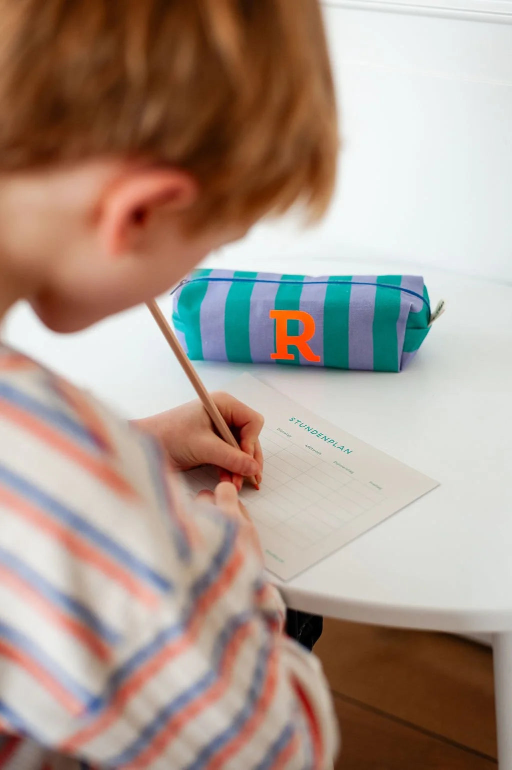 Dieses wunderschöne Etui im angesagten Streifendesign wird zu deinem ganz persönlichen Lieblingsstück: Mit einer individuell wählbaren Initiale in deiner Wunschfarbe wird jedes Exemplar ein echtes Unikat.