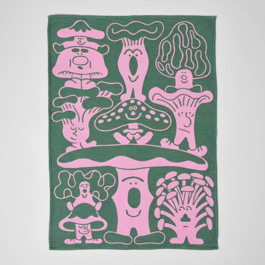 Hergestellt aus 100% gewebter Baumwolle, zeigt das Tuch verschiedene charaktervolle Pilze.