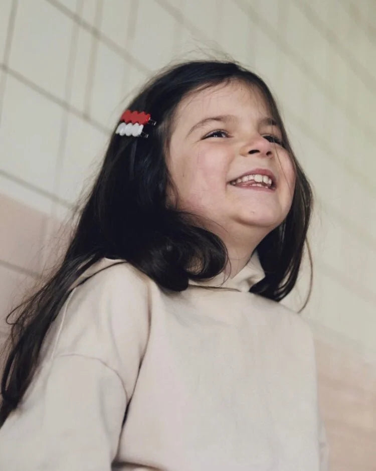 Halten Sie den Pony zurück, schneiden Sie die Haare zurück oder verwenden Sie ihn einfach für stilistische Zwecke, indem Sie Ihrem Haar etwas Flair verleihen. Kombinieren Sie diese Haarspangen, schichten Sie sie übereinander oder tragen Sie sie einzeln für einen weichen, saisonalen Look. Um den Verpackungsaufwand zu reduzieren, werden diese Clips auf einer Karte zusammengefasst.