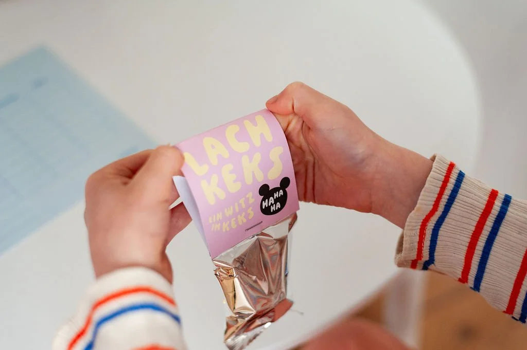 – Einzelkeks mit witzigem Tierwitz auf dem Zettel