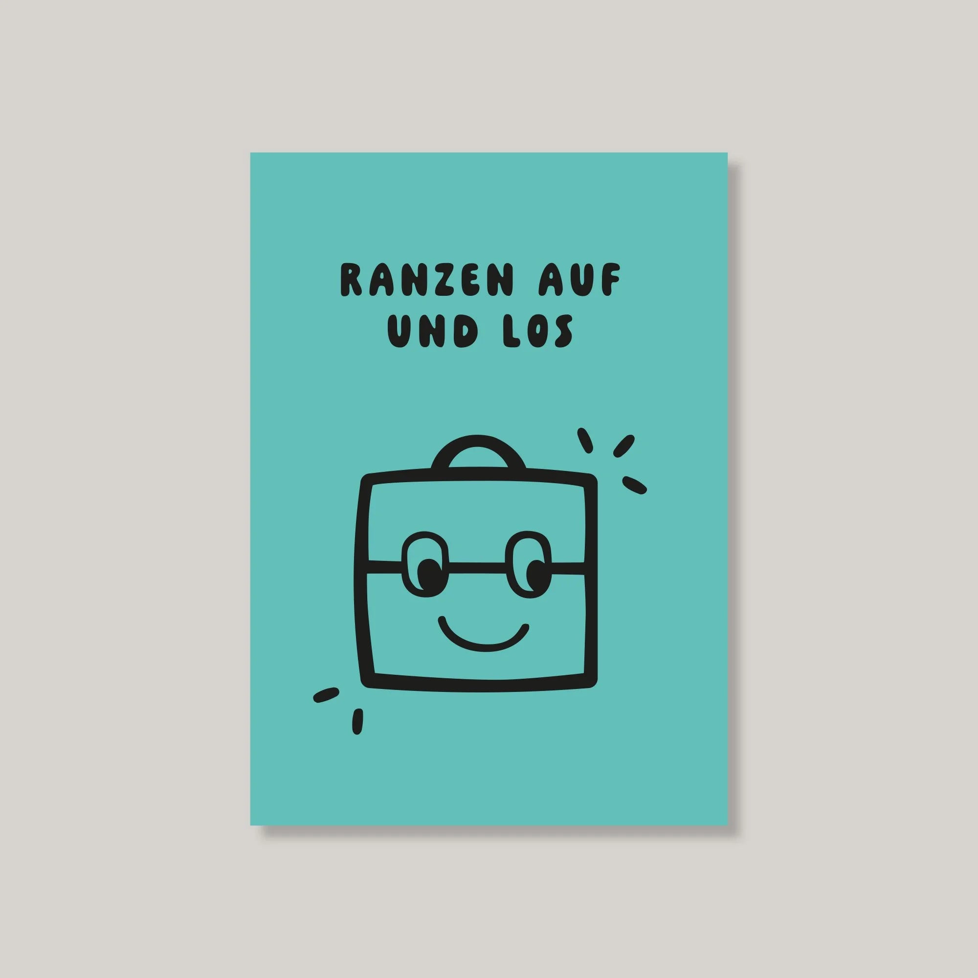 Postkarte "Ranzen auf und los" aus unserer eigenen Papeterie-Kollektion.