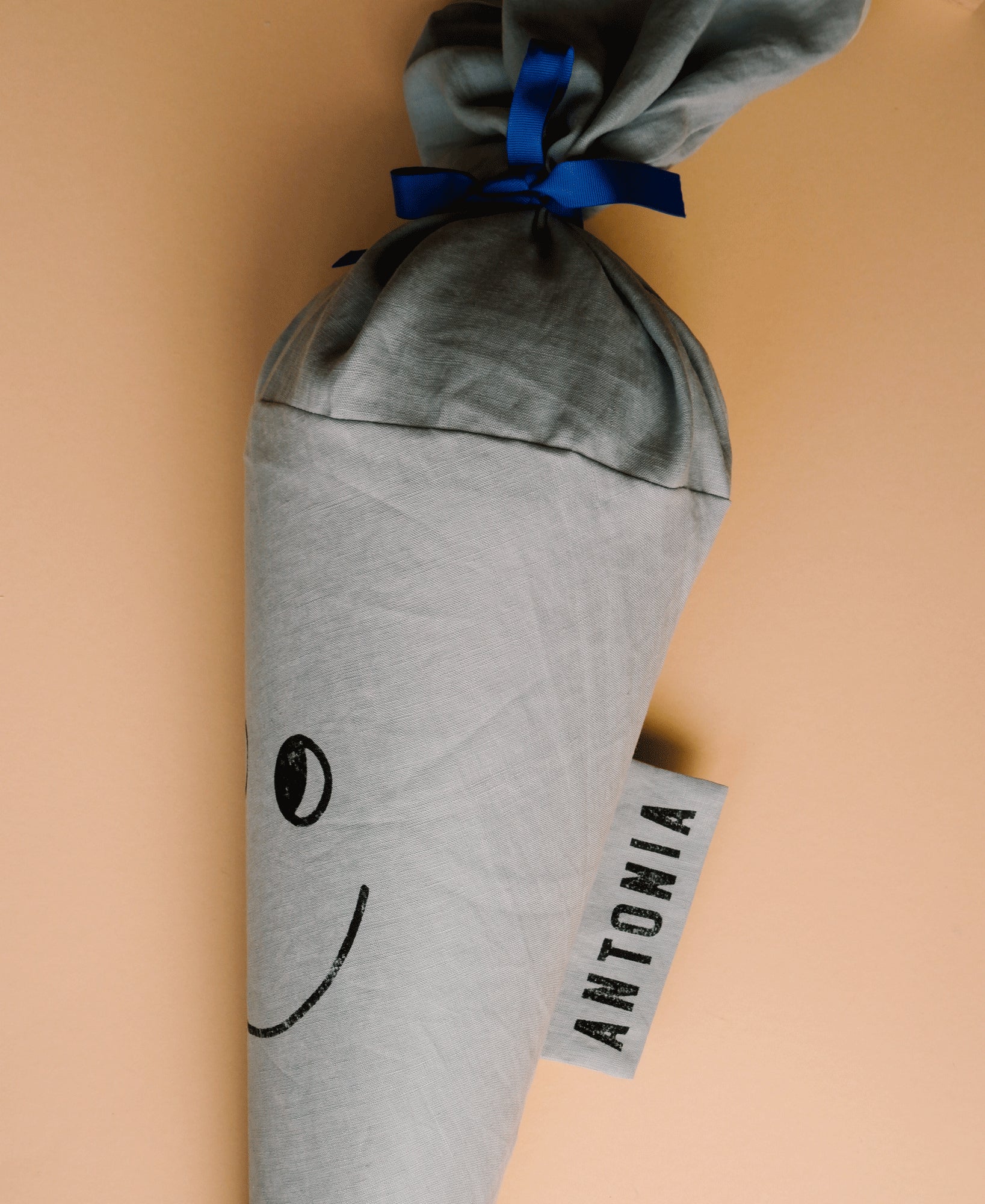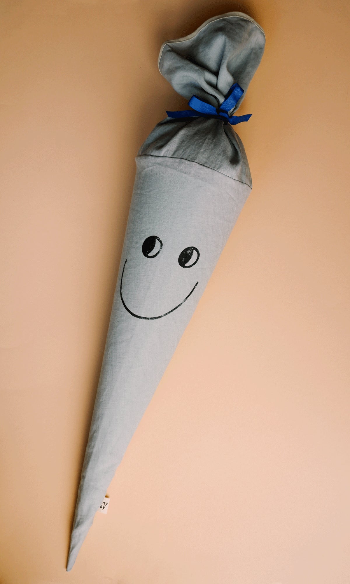 Das freundliche Gesicht wird von Hand auf den Stoff gestempelt und verleiht der Schultüte ihren charakteristischen, positiven Ausdruck.