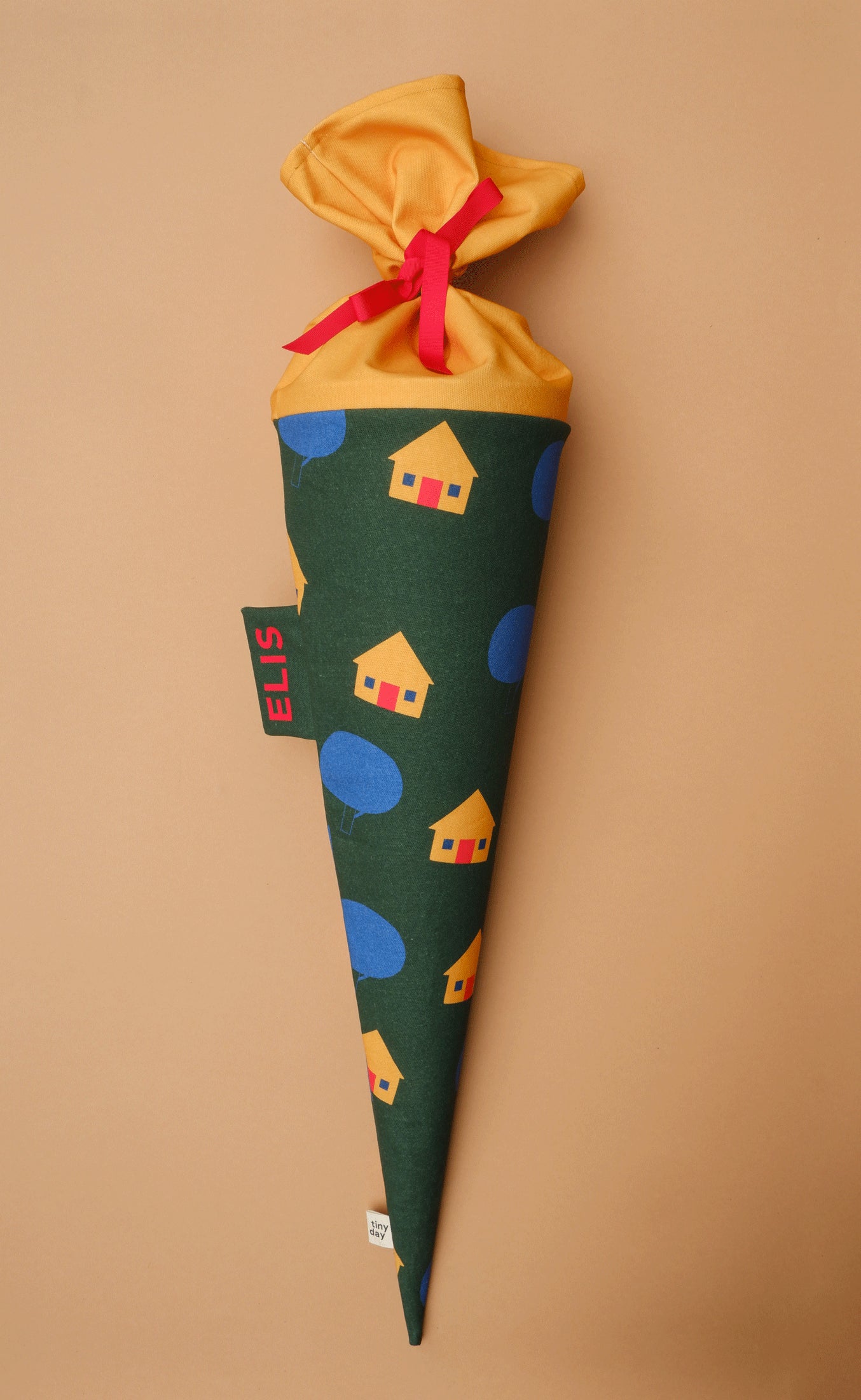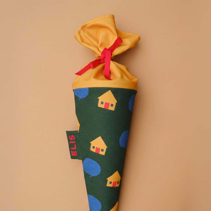 Diese Schultüte aus Stoff mit dem Motiv Häuschen ist ein liebevoller Begleiter zur Einschulung und für jedes Schulkind etwas ganz Besonderes.