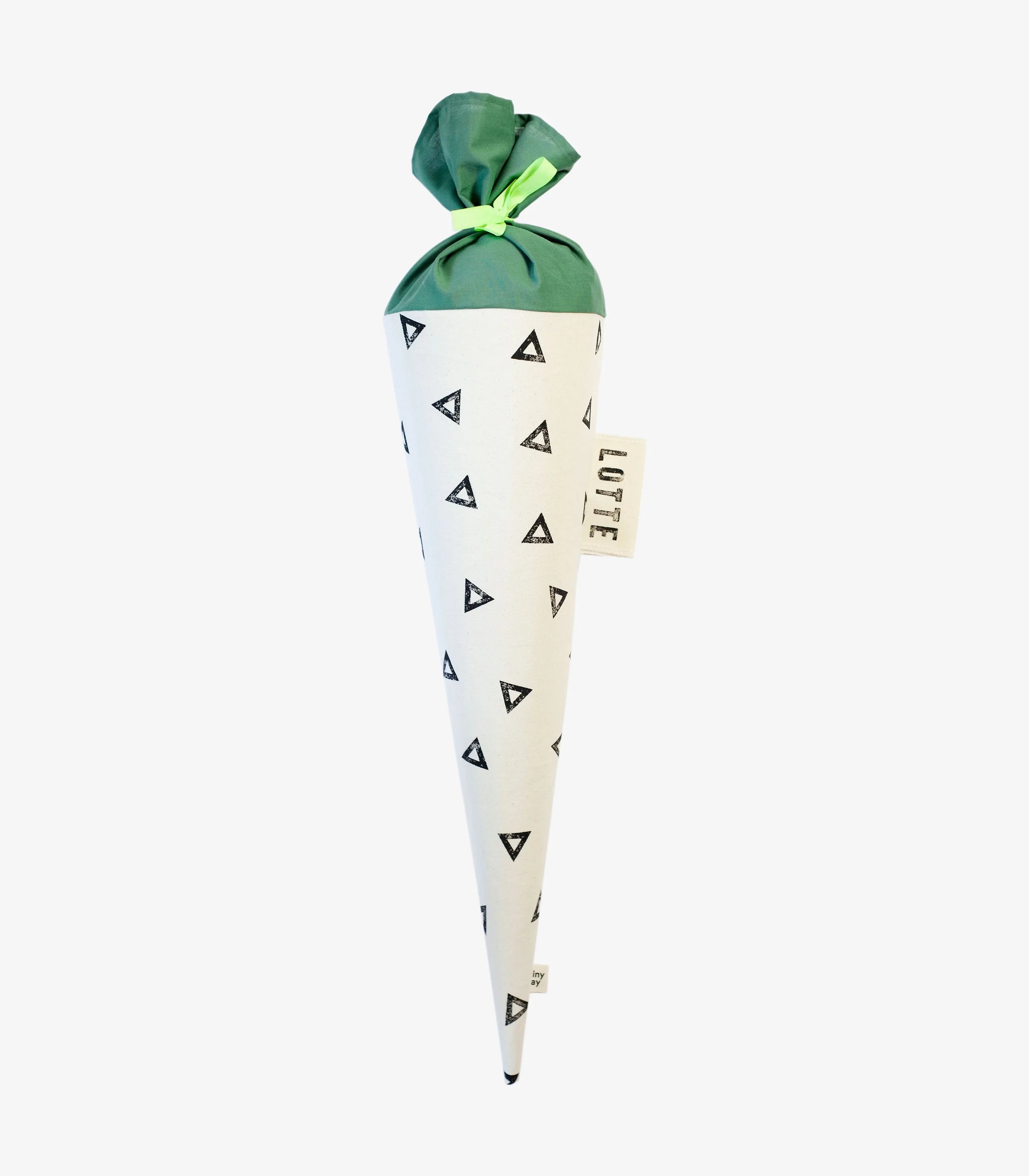 Diese Schultüte aus Stoff mit Outline-Dreieck-Motiv ist ein moderner Begleiter zur Einschulung und für jedes Schulkind etwas ganz Besonderes.