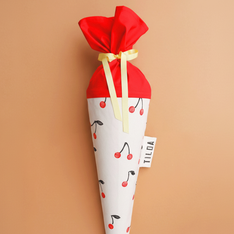 Diese Schultüte aus Stoff mit rotem Kirschenmotiv ist ein fröhlicher Begleiter zur Einschulung und für jedes Schulkind etwas ganz Besonderes.