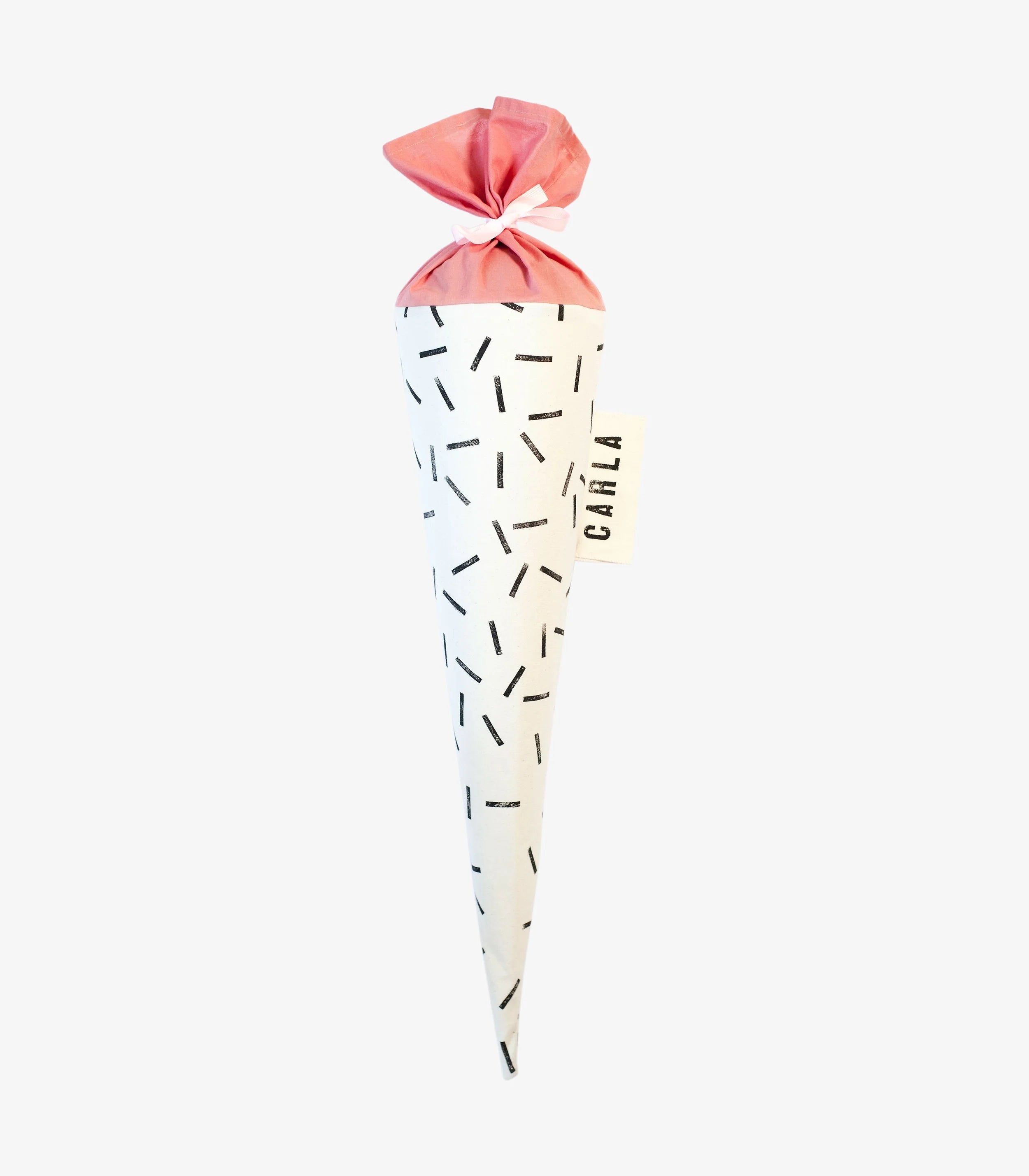 Diese Schultüte aus Stoff mit Strich-Motiv ist ein moderner, minimalistischer Begleiter zur Einschulung und für jedes Schulkind etwas ganz Besonderes.