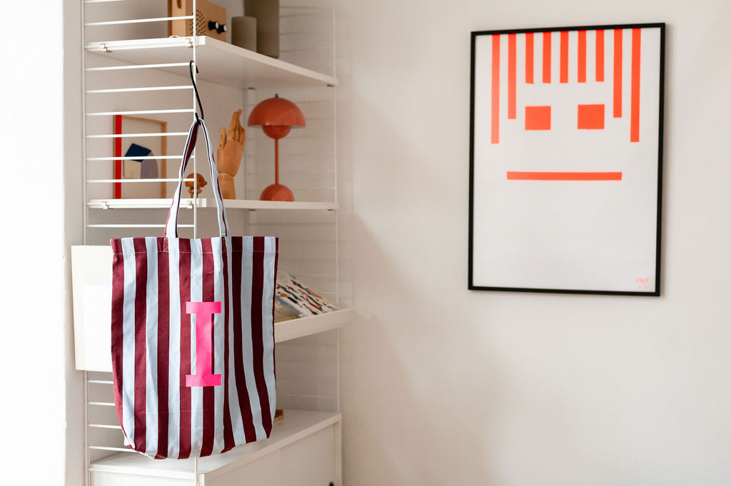 Die Farbkombination Hellblau-Aubergine macht diese gestreifte Baumwolltasche zu einem echten Design-Statement. Mit deiner personalisierten Initiale wird sie zu einem unverwechselbaren Unikat, das Stil und Individualität ausstrahlt.