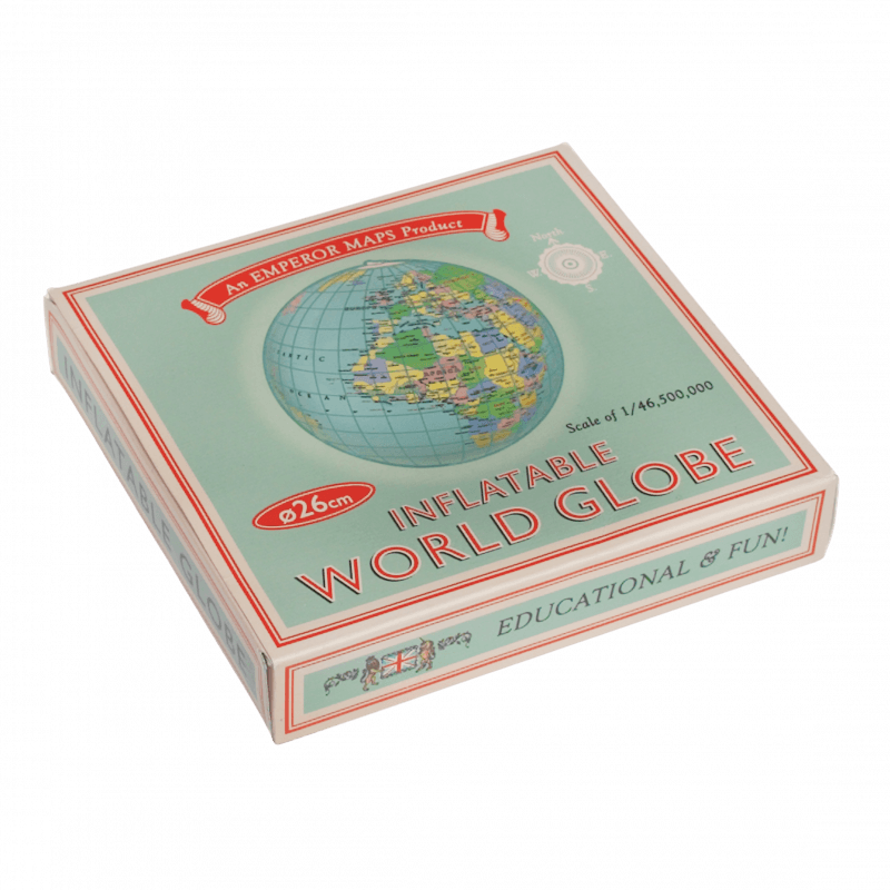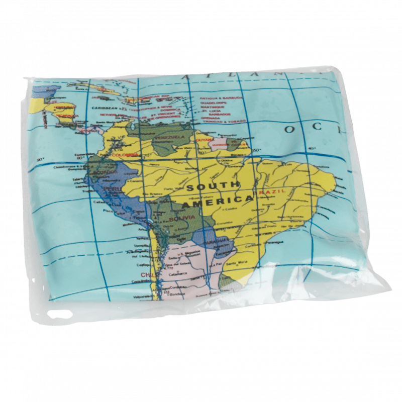 Ein klassischer Wasserball in Form einer Weltkugel, den man kicken oder sich zuwerfen kann.