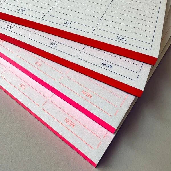 Die cleane Gestaltung wird durch die leuchtstark gefärbte Leimkante abgerundet – so macht der Montag wieder Spaß!