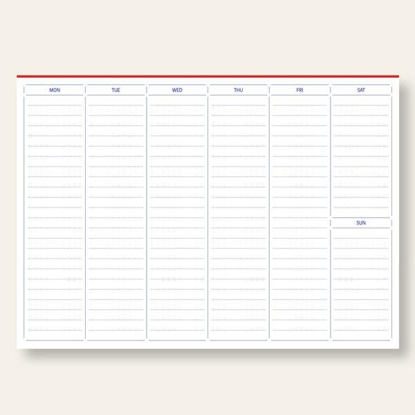 Praktischer Wochenplaner, umweltfreundlich in einem kräftigen Blau gedruckt.
