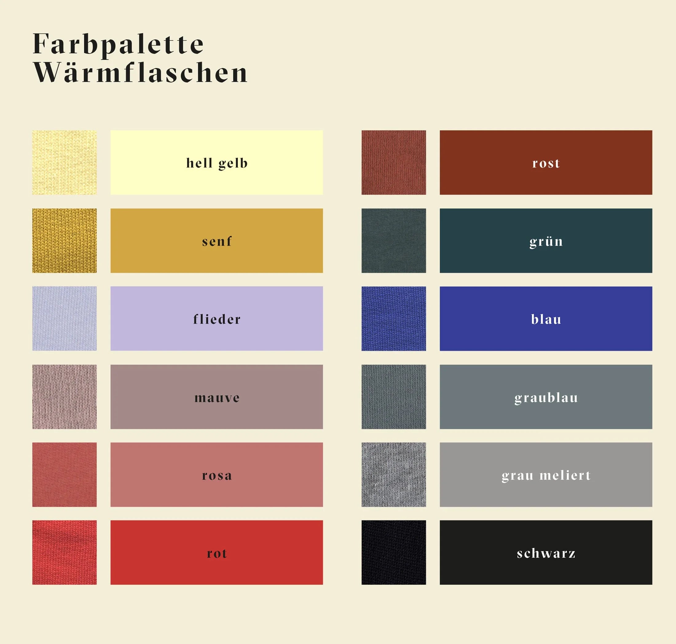 Mach es Dir gemütlich mit der kuscheligen Wärmflasche aus weichem Bio-Sweatshirtstoff. Wähle zwei Lieblingsfarbe aus der Farbpalette aus.
